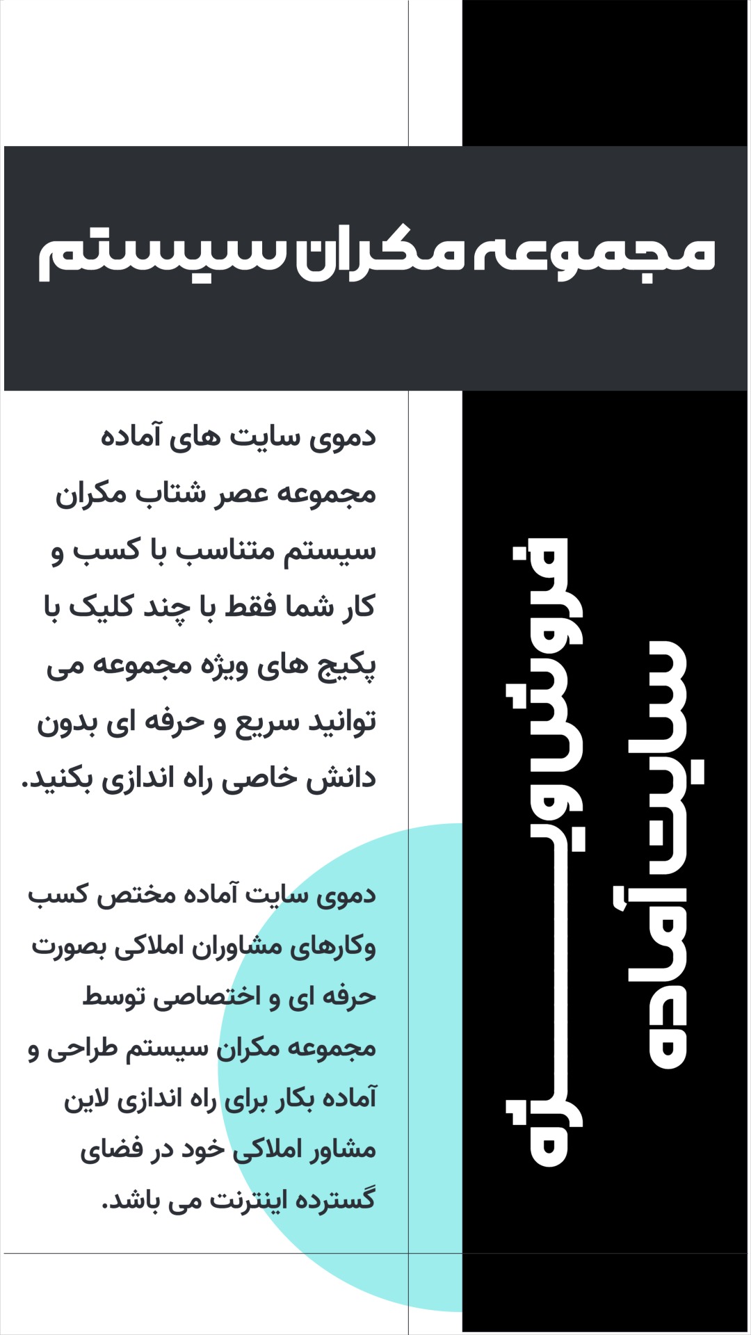 همانگونه که مستحضر می باشید قرن بیست و یکم را قرن ارتباطات و فن آوری اطلاعات نام نهاده اند. با توجه به این امر، می بایست به تکنولوژی ها و ابزارهای مرتبط در این حوزه با دید ابزارهای صنعتی و فراصنعتی نگریسته شود و از این رو به حساسیت موجود در این صنعت پی برده و لزوم گذار از سیستم های کسب و کار سنتی به سیستم مدرن رسانه های دیجیتال پی خواهیم برد. طراحی سایت های مدرن و مطابق با آخرین استانداردها، اولین قدم در راه رسیدن به این اهداف و پیمودن مسیر پر پیچ و خم گذار از تجارت سنتی به تجارت نوین جهانی می باشد. با مکران سیستم اولین قدم خود را محکم و با ثبات بر خواهید داشت.