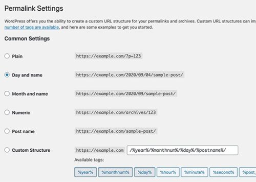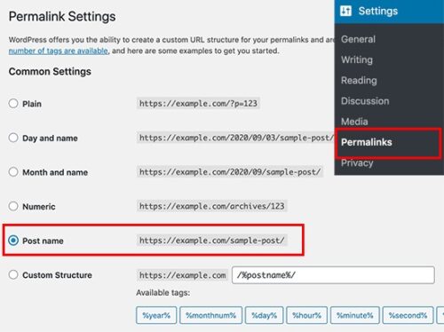با این حال، وردپرس به شما این امکان را می دهد که به راحتی آن را به URL های معنادارتر و دوستانه برای سئو تغییر دهید و مجموعه ای از گزینه ها را در اختیار شما قرار می دهد تا از قسمت تنظیمات و صفحه Permalinks یکی را انتخاب کنید.