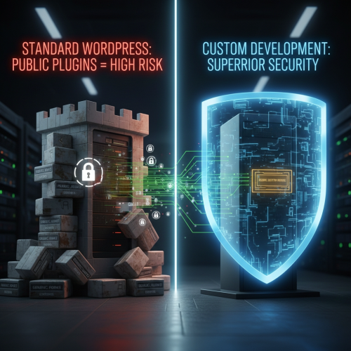 استفاده از افزونههای عمومی، بزرگترین عامل ریسک امنیتی در وردپرس استاندارد است. با حذف این وابستگیها، امنیت به شدت ارتقا مییابد: