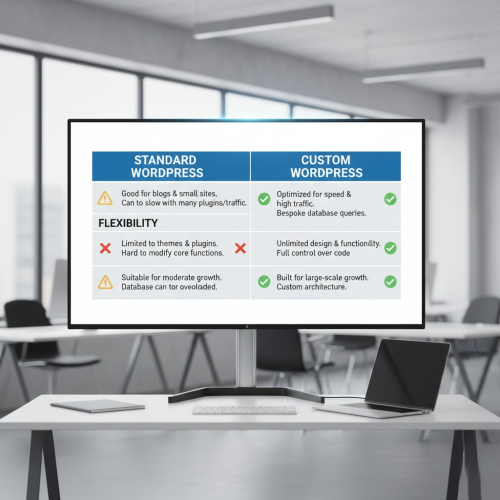 وردپرس سفارشی چیست؟ تفاوت آن با وردپرس معمولی. بیاموزید چگونه با Custom WordPress سایتهای اختصاصی، مقیاسپذیر و بسیار بهینه برای کسب و کارهای بزرگ طراحی کنید.